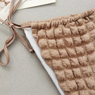 Crafted from a blend of nylon and spandex, the Bubble Solid Color Three-Piece Suit offers a modern twist on classic swimwear. Its distinctive bubble texture adds depth and visual interest, ensuring you stand out by the water. The set includes a halter neck top, matching bottoms, and a chic sarong, all in a solid color that exudes timeless elegance. Perfect for sun-soaked days and beachside strolls, this suit makes you look and feel your best.