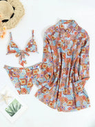 Step into sophisticated charm with our Floral Shirt Print V Neck Three-Piece Ensemble. Meticulously crafted from a blend of nylon and spandex, this ensemble offers a breathable fit that contours delicately to your form. The v-neckline adds a touch of femininity, while the floral print brings a fresh, vibrant feel to your wardrobe. Whether worn together or as separates, each piece complements the other seamlessly.