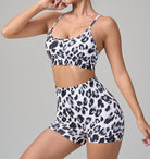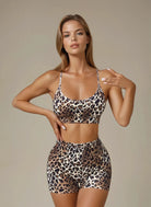 Unleash your inner wildcat with this fierce leopard print bra and shorts set! Designed for bold, confident queens, this set features a sleek, stretchy fit that hugs your curves like a dream. The strappy sports bra offers both support and sass, while the high-waisted shorts sculpt that silhouette effortlessly. Whether you're hitting the gym, lounging at home, or making a street-style statement, this two-piece serves untamed energy with a touch of effortless glam. Available in classic brown and icy white leopard prints, it's the ultimate power move for your wardrobe.