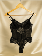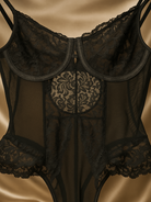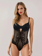 Set the mood with Mhyth’s Midnight Ember Lacey Bodysuit in a bold jet black hue, designed to captivate from every angle. This one-piece stunner features intricate floral lace embroidery on the front panel and hips, paired with sheer mesh side panels that highlight your silhouette effortlessly. Crafted from premium polyester, nylon, and mesh, it offers a lightweight yet luxurious feel. The bodysuit includes underwired cups, adjustable straps, and secure back hooks for enhanced support and a custom fit. Perfect for those unforgettable nights where elegance meets seduction - Mhyth brings out the fire in you.