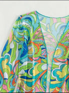 Discover the ultimate in vibrant, sunny style with this Printed Four Piece Set. Featuring a lively, eye-catching print, this set is perfect for making a statement. Made from a blend of nylon and spandex, each piece is designed to provide a snug yet comfortable fit. The set includes a stylish bikini, a matching headbandana, and a versatile long-sleeve shirt cover-up. This combination allows for effortless transitions from the pool to the beach, making it a must-have for any vacation.